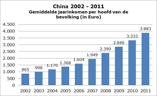 China economie – In dit artikel treft u enkele wapenfeiten van China met betrekking tot de inkomensontwikkeling en levensverwachting over de laatste 10 jaar. De economische groei van gemiddeld 10% per jaar heeft zijn vruchten afgeworpen. Wanneer we (bijvoorbeeld) kijken naar het aantal verkochte BMW’s dan zien we een sterke groei: van 6.677 (in 2002) naar 217.068 (in 2012).